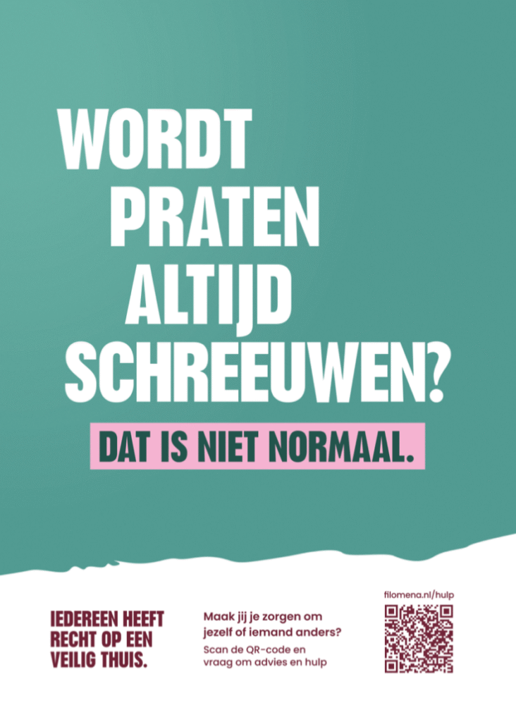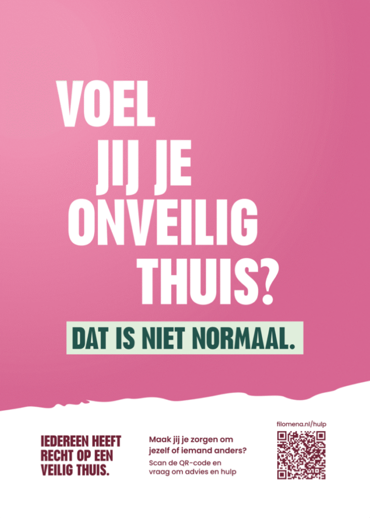 Tijdens Orange the World vragen we met posters extra aandacht voor een veilige thuissituatie. We hopen dat deze extra aandacht met posters in onder meer scholen meer mensen helpt om de weg naar de juiste hulp te vinden.